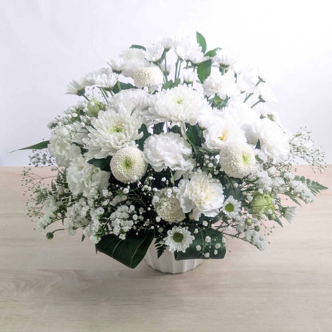 お花とともに、静かな祈りをお贈りします。あの方の優しい記憶が、これからもあなたを包みますように。
