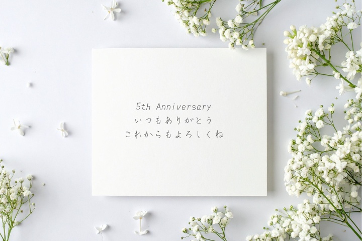 5周年おめでとうございます。これからもお互いを大切に、穏やかな時間を育ててください。