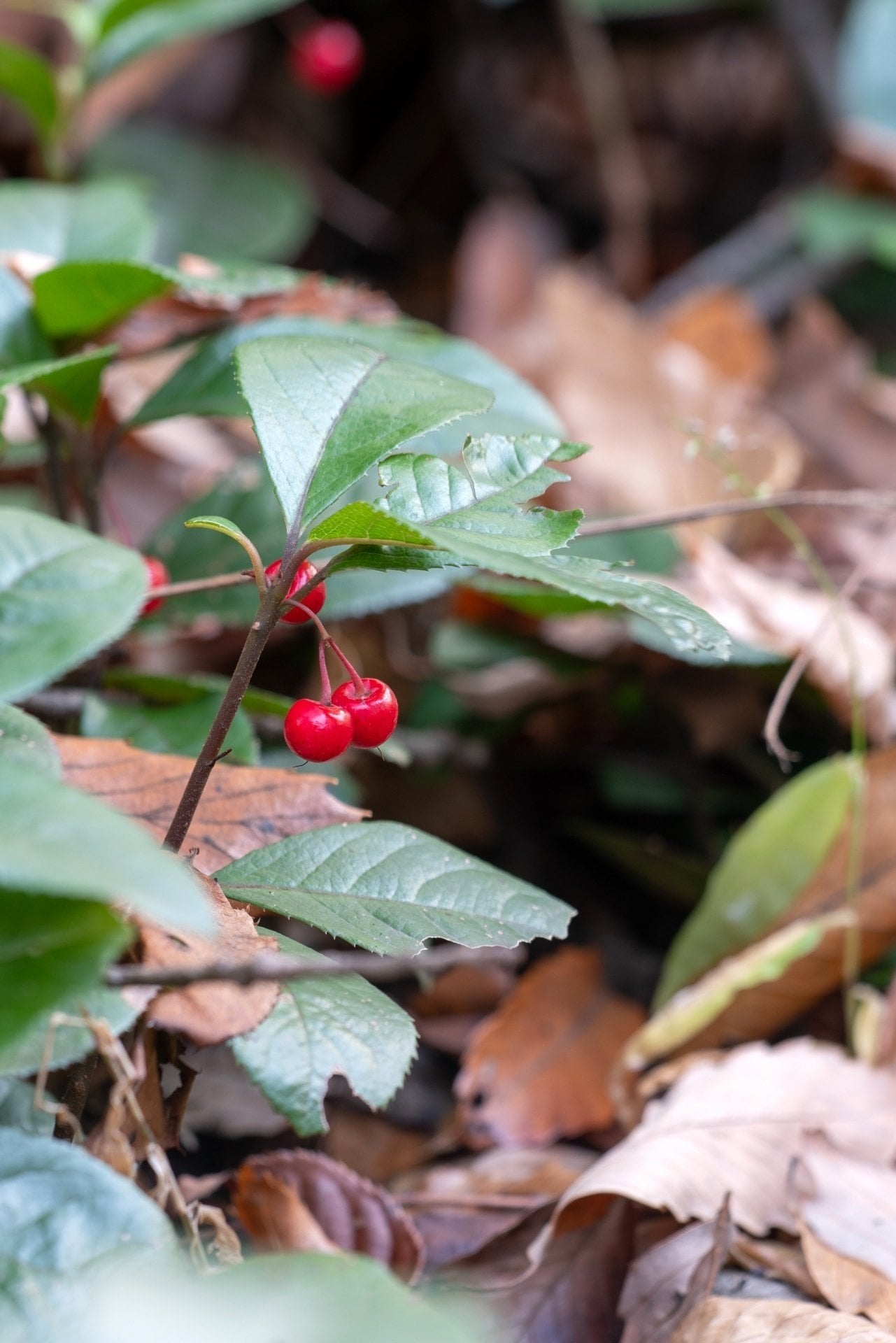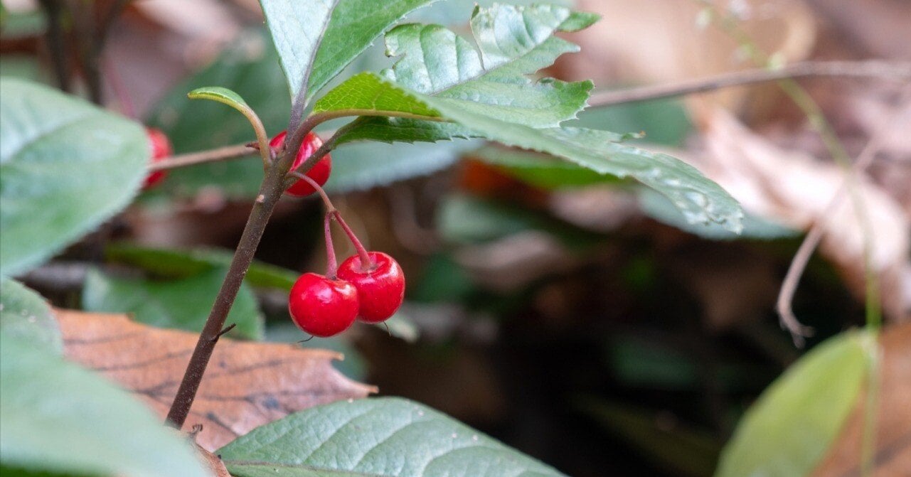 赤い実には、千両 万両をはじめ縁起の良い名前がついていることがありますが、この藪柑子も、そのひかえめな佇まいならではに「十両」と呼ばれます。本当にささやかですが、人を祝福するような福々とした輝きに充ちていていい。葉が落ちても実がなり続ける強かさもいい。縁起ものたる所以でしょう。