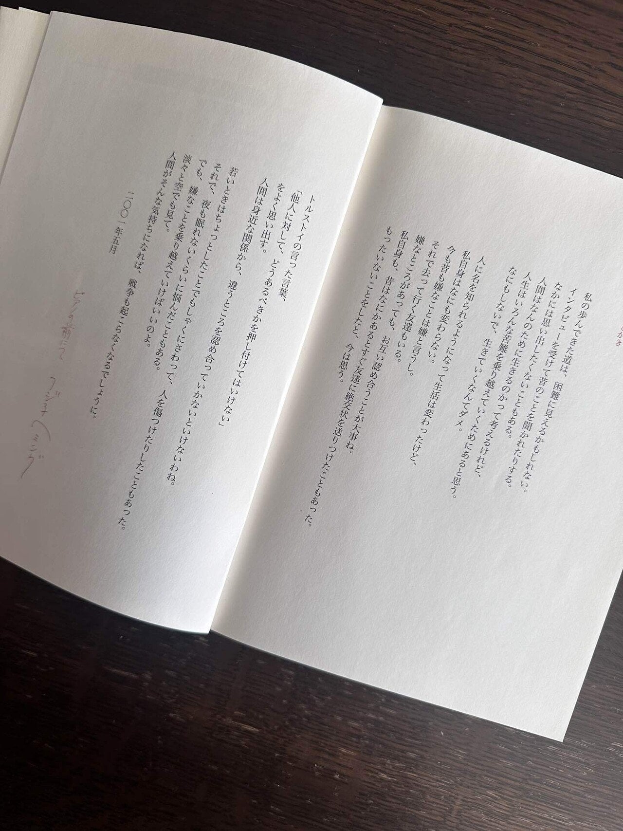 人間がそんな気持ちになれば、戦争も起こらなくなるでしょうに。2001年5月
