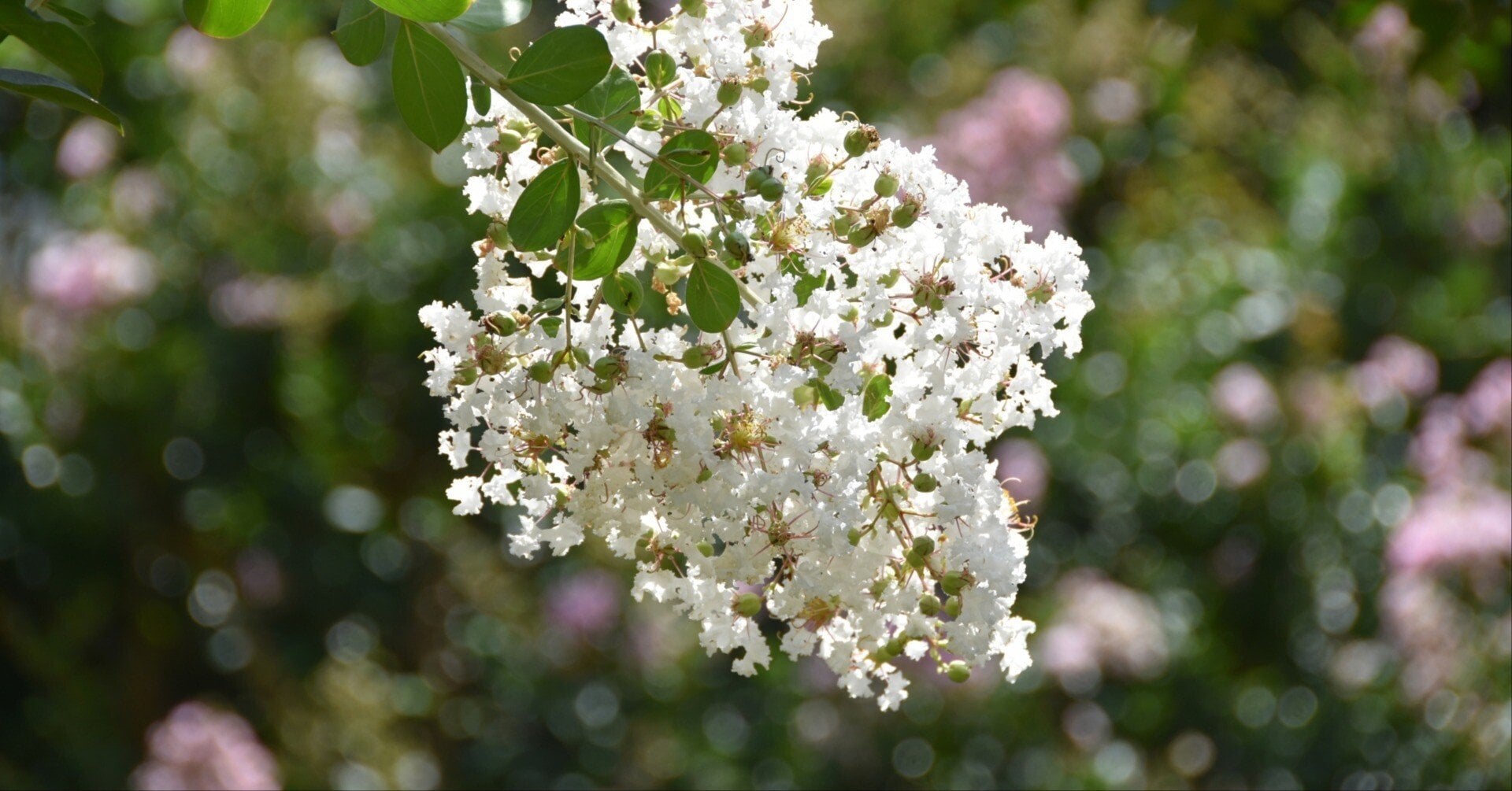枝先に、縮れたレースを集めたような小花が群がって咲きますが、この木の肌を指先でこすると、その枝の上の花が笑っているように動くので「くすぐりの木」という呼び名もあるそうです。