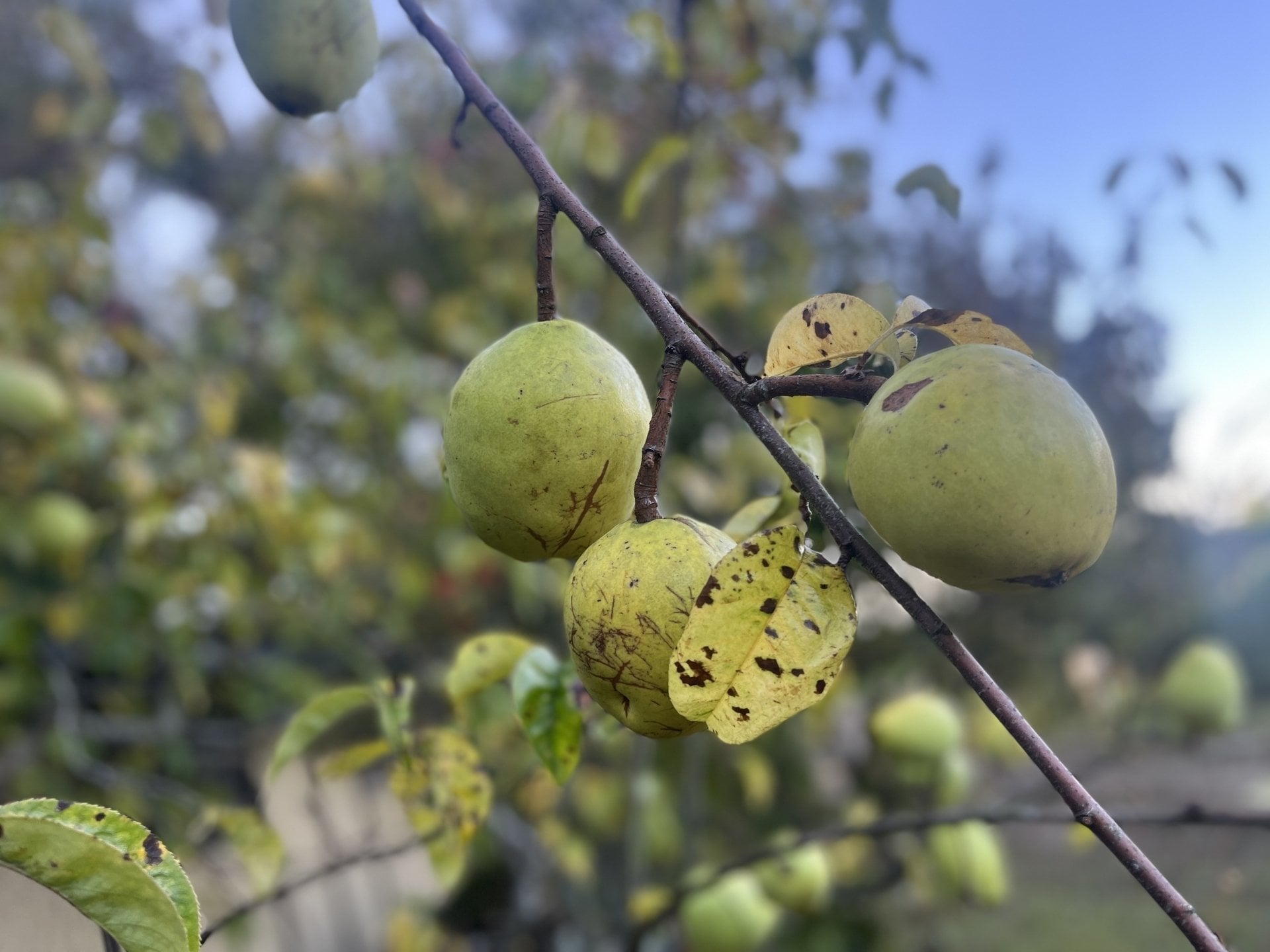 今年も夏の間に徐々に大きくなったカリンの青い実を目にするようになりました。