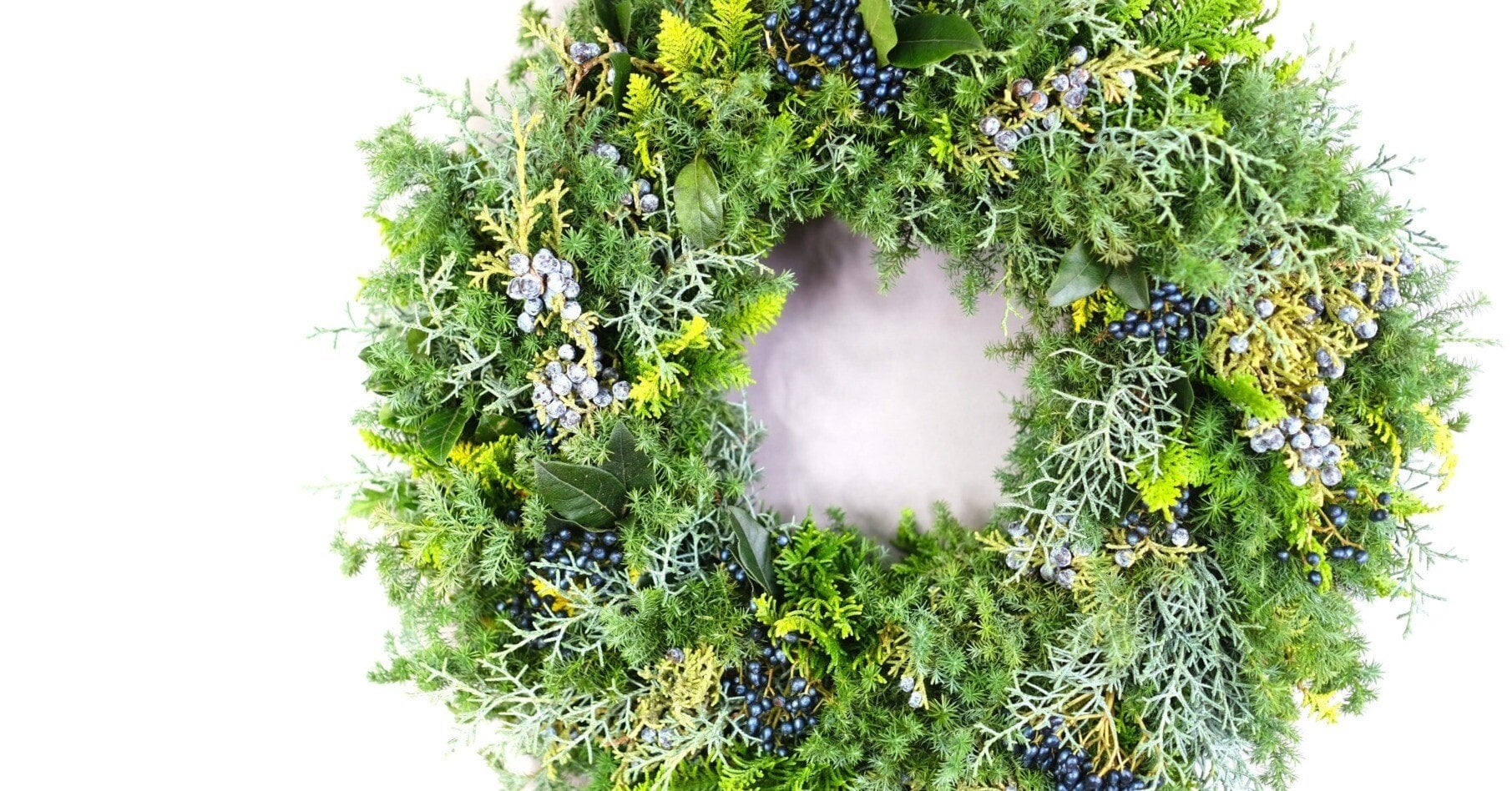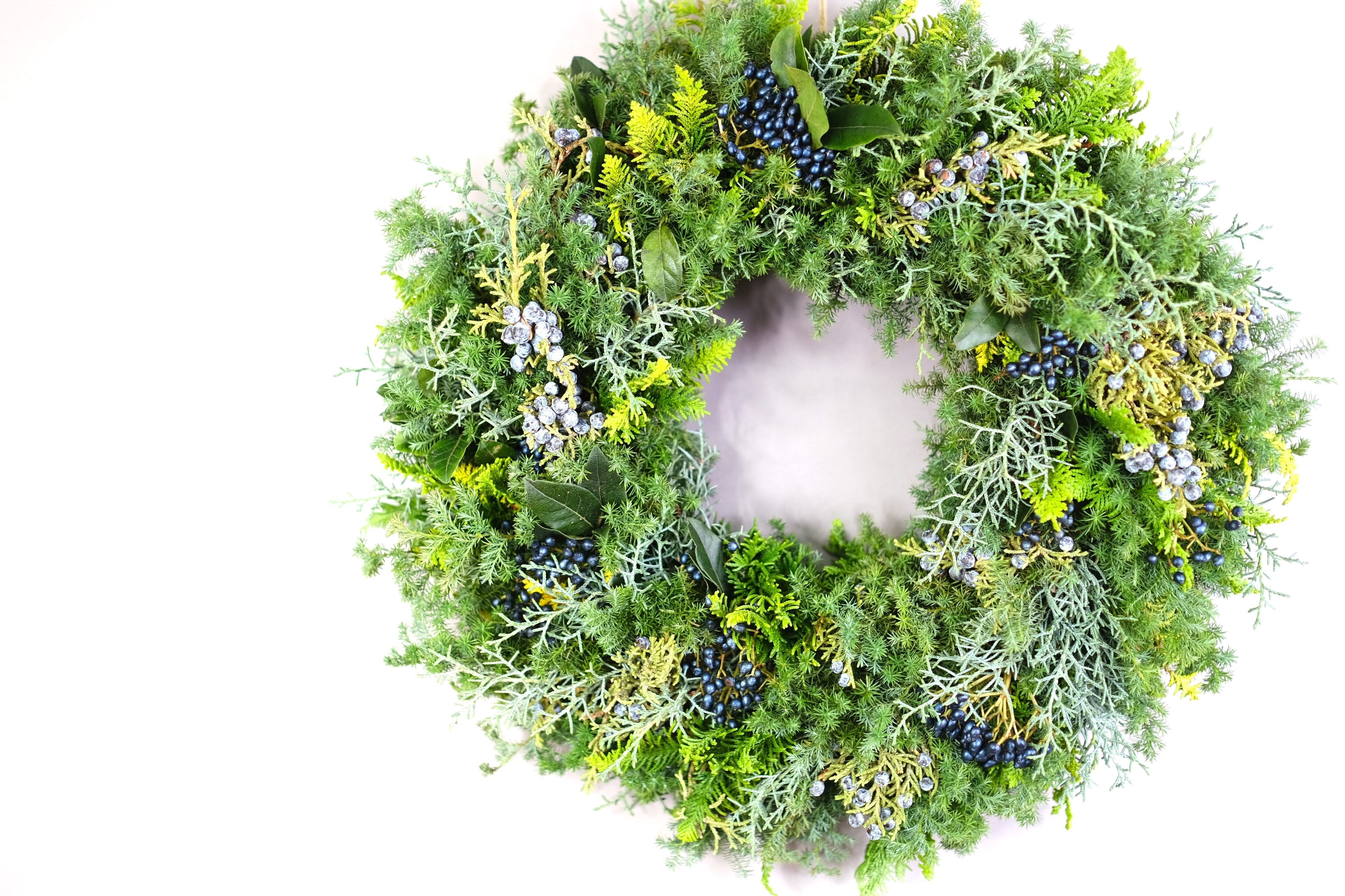 リースといえば「始まりがなく終わりもない」無限のループ。このリースの閉された環のかたちは、キリスト教においては歳月の循環や太陽の動きに喩えられ、永遠性の象徴とされています。