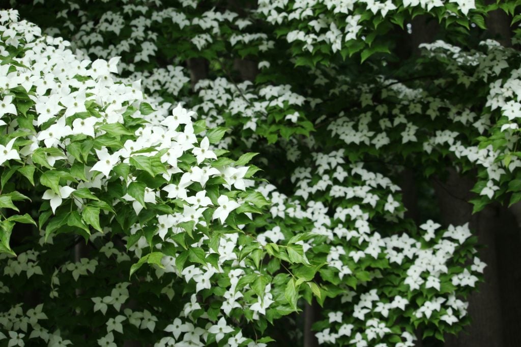 近縁のハナミズキ(アメリカヤマボウシ)よりも開花時期は遅く、ちょうど今ごろが満開です。