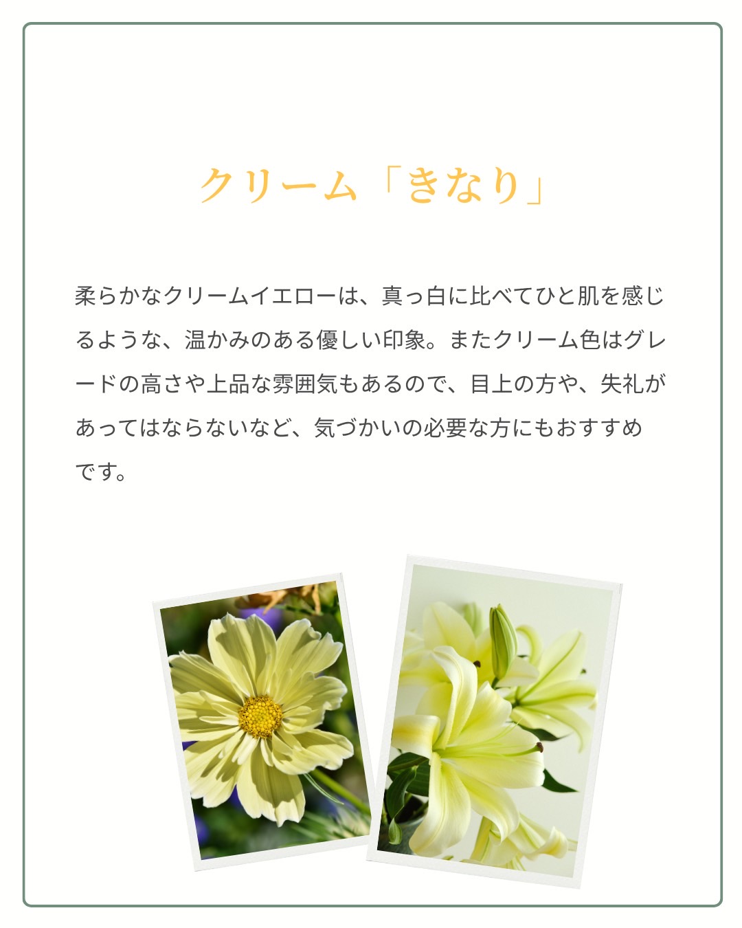 「きなり」の柔らかなクリーム色は、真っ白よりも温かみがあり、上品な印象を与えます。