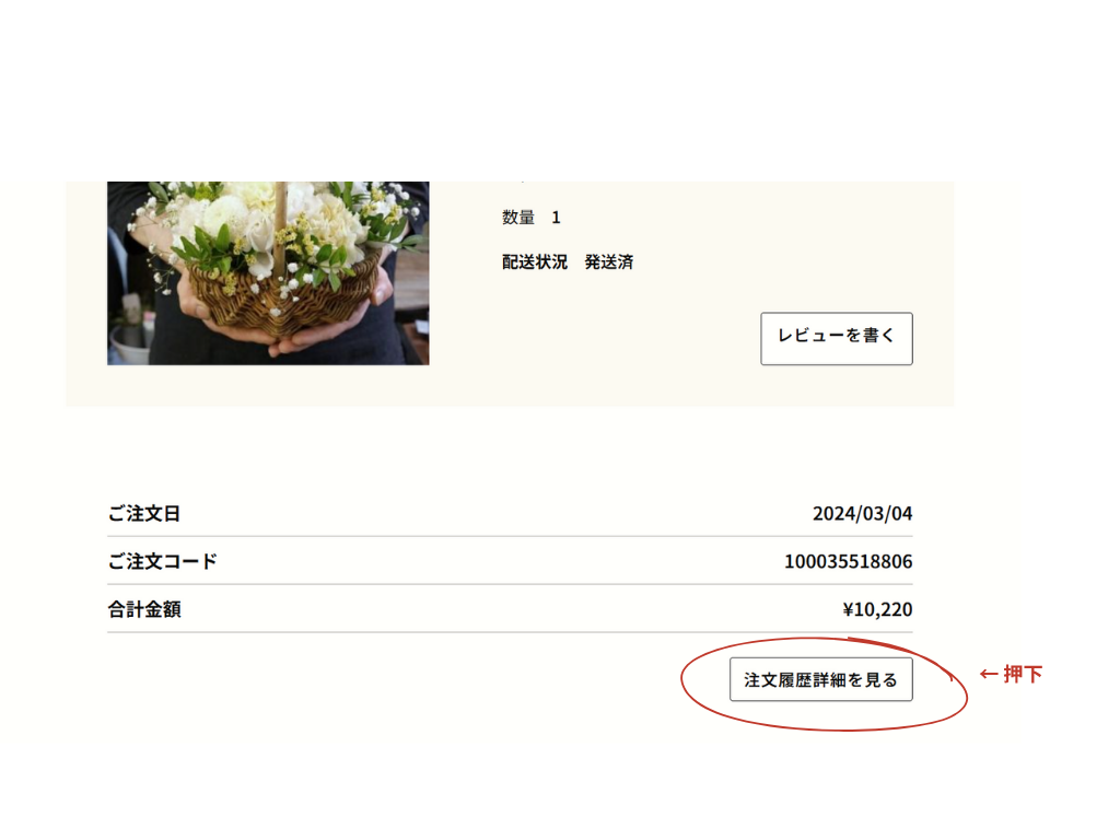 2. 該当する注文履歴より「注文履歴詳細を見る」ボタンを押下します。