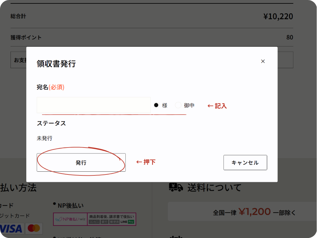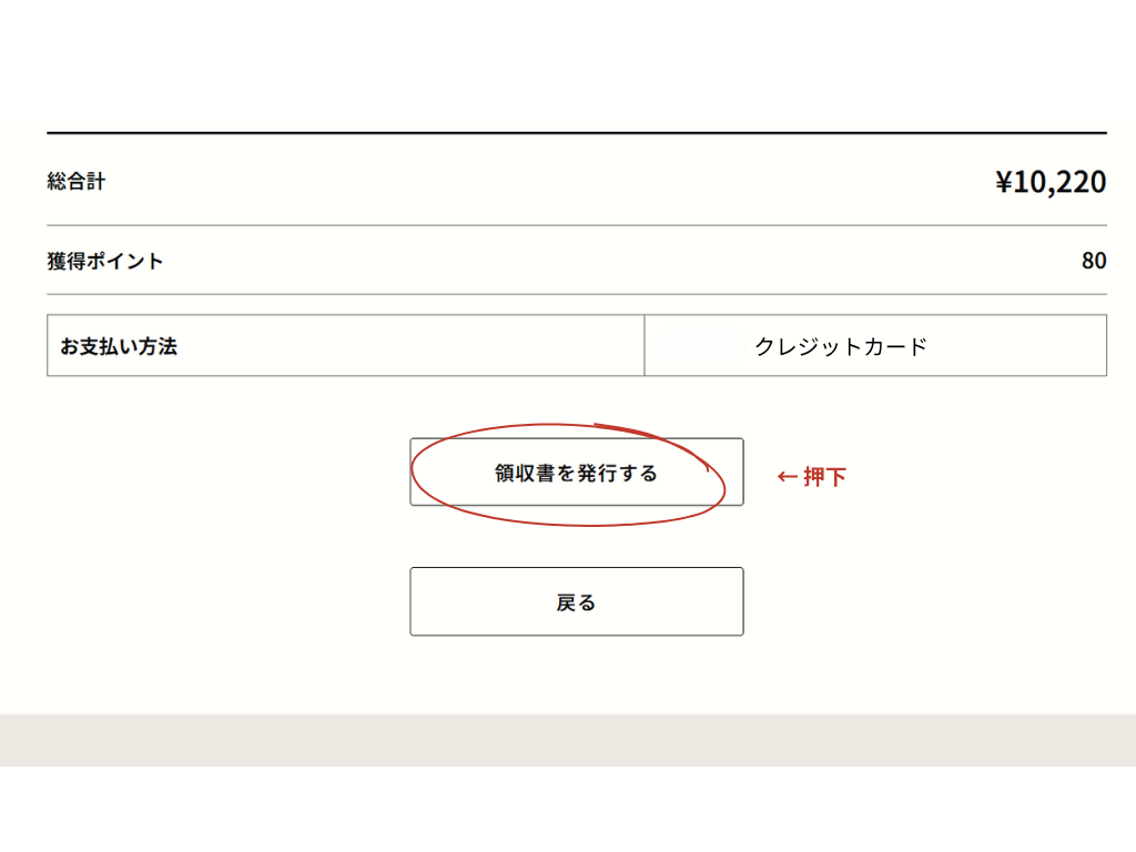 3. マイページの「注文履歴詳細」にある、「領収書を発行する」ボタンを押下します。