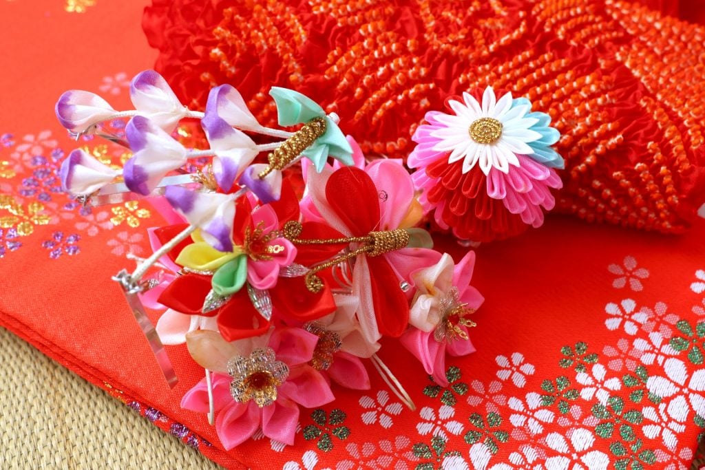 さて儀式としては、古くからの風習である3歳の「髪置(かみおき)」、5歳の「袴着(はかまぎ)」、7歳の「帯解(おびとき)」に由来するといわれています。男女ともに、3歳はこの日から髪を伸ばしはじめ、5歳は初めて袴をつけ、7歳は、それまでの紐付きの着物に代わって「本仕立ての着物と丸帯」という大人の装いをするようになります。