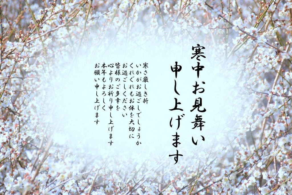 寒中見舞いは、松の内(一般的に1月7日、関西では15日まで)を過ぎた時期に出ます季節のご挨拶です。