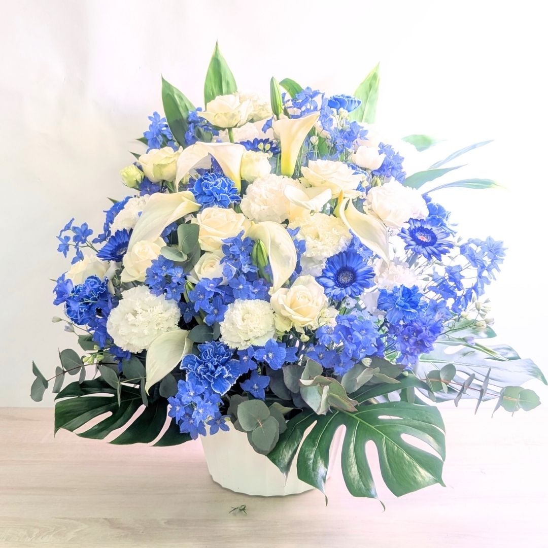 注文商品名:【さわやか清潔感】誠実が伝わる青白「インディゴ」アレンジメント 2L