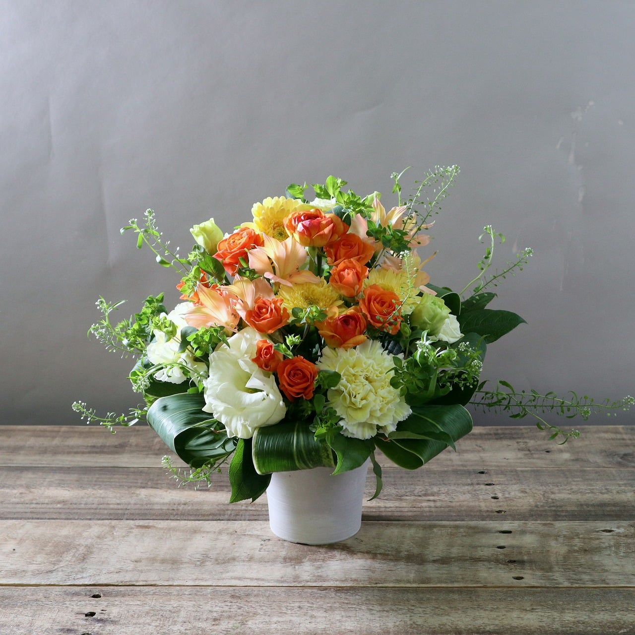 ご感想:知人が個展を開催するとのことで、お花のお祝いを贈りたいなと思い、ネットで検索していて「HANAIMO」さんのウェブサイトにたどり着きました。