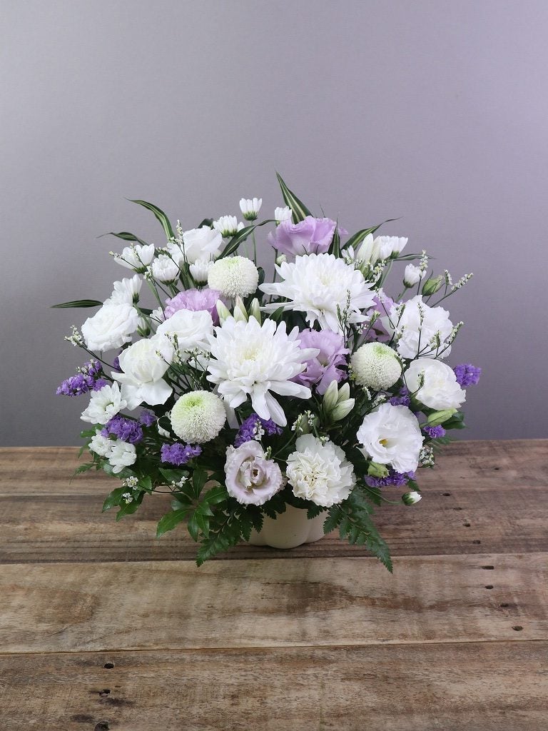 ご感想:リクエスト通り、淡く上品なお花に仕上げて頂けてとても満足です。祖母のイメージにピッタリでした。ありがとうございました。