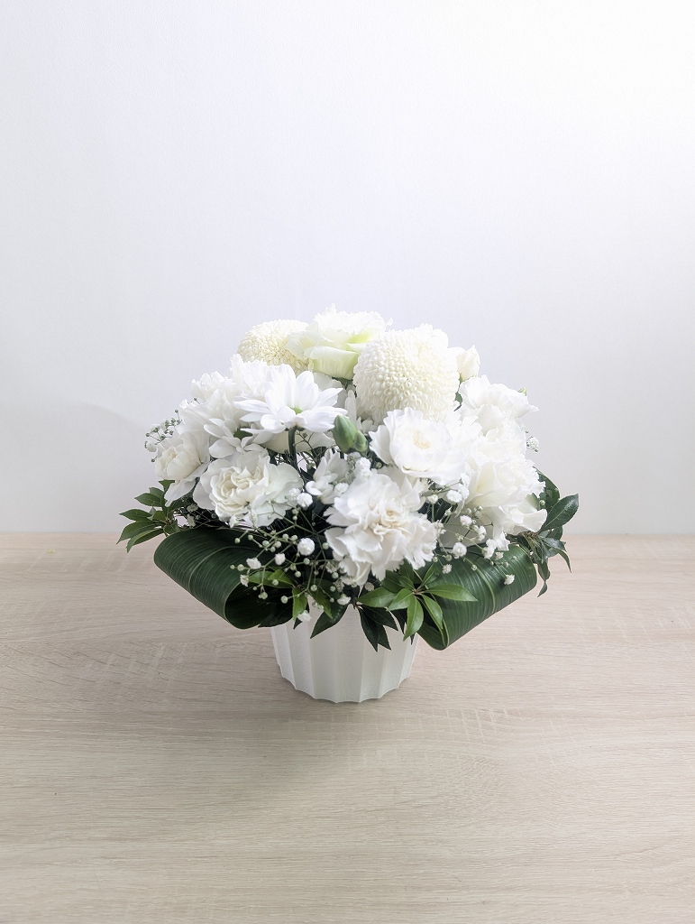 【お供えのお花】どの角度から見ても趣があり、清々しさと気品に満ちあふれています。