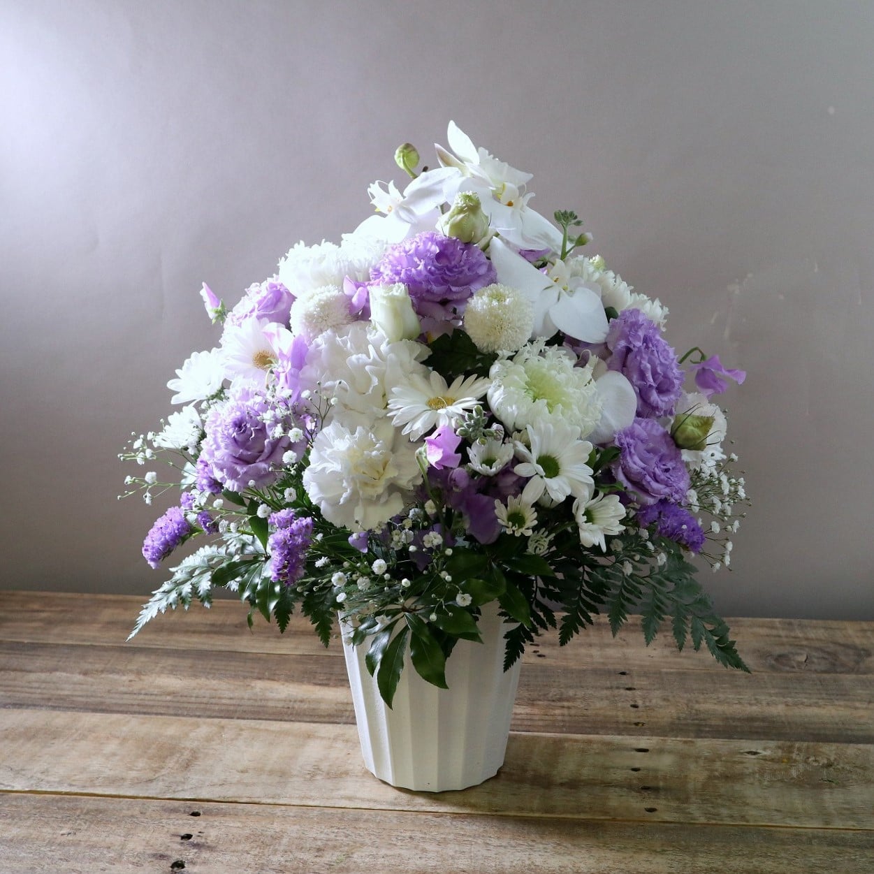ご感想:祖母が好きだった色のお花も入れ込んでもらった上で全体的に品よく仕上げてくださり感謝しています。親族からもセンスが良いと言われこちらも嬉しかったです。