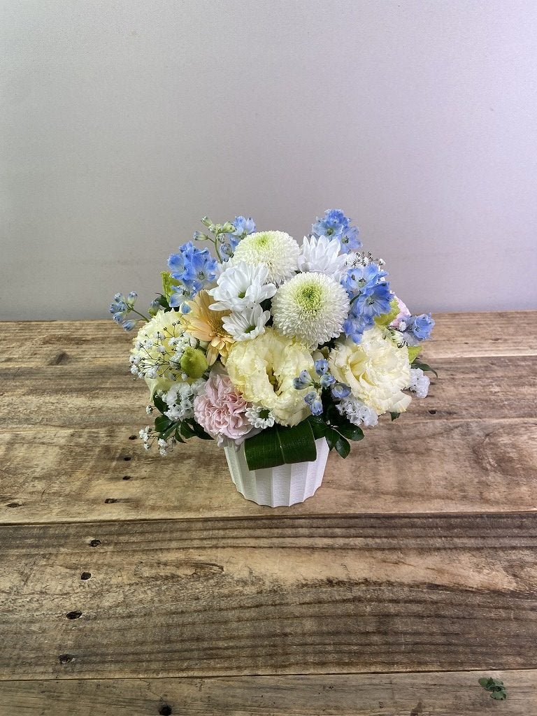 注文商品名:【ほんの気持ちで贈るなら◎選べる5色・花画像サービス】月命日のお供え・お悔みアレンジメントSサイズ