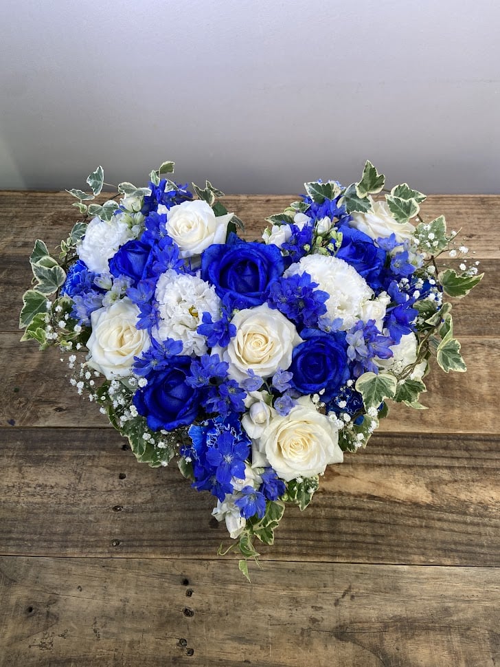 ブルー系のハートをお任せしたのですが、予想通りのとても涼しげで素敵なアレンジで、大満足です!