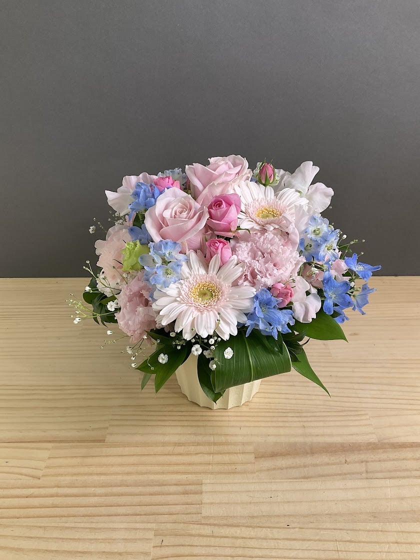 淡い色の物を探しておりました。 華やかで尚且つお届け先に馴染むパステルカラーで一目惚れしてお願いしました。