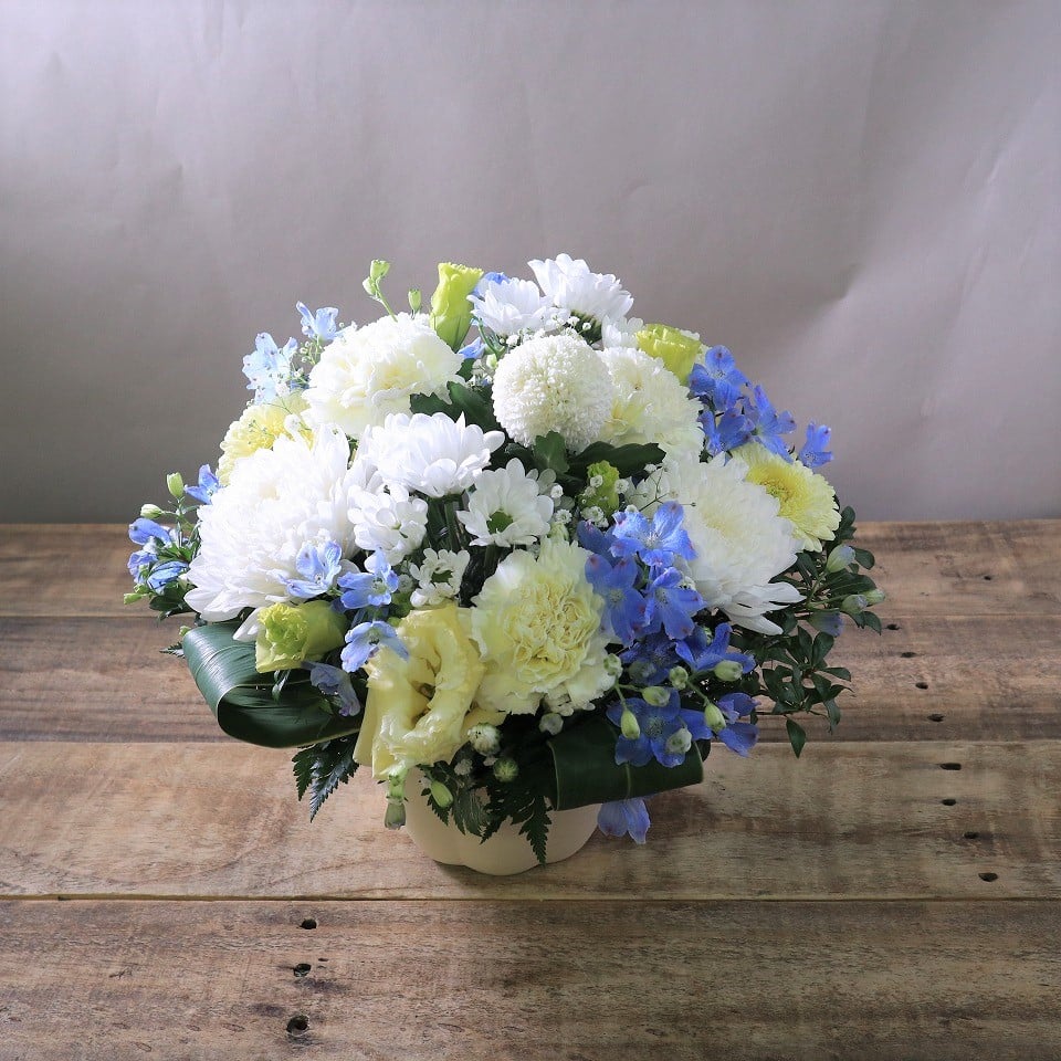 お供え花・お悔やみ花・レビューリピーターの声友人のイメージにぴったりのすてきな仕上がりでした。 お名前 : pico 様 ご用途: お供え花 お花の評価:100点満点中【100点】 ご感想:友人の三回忌にご主人様宛にお願いしました。昨年もお願いしていたので、安心しておまかせできました。クリームベースで暗くならないようにとの依頼に、青い花を混ぜていただき、友人のイメージにぴったりのすてきな仕上がりでした。先方もとても喜んでくださいました。ありがとうございました。 この商品のご注文はこちらから 古い記事元気が出そうな明るい色合い、コロナのさなかにありますが、素敵な時間を贈れたと思います。新しい記事友人からも誕生日に何回かこちらのお花をいただいたことがありますが、毎回本当に素晴らしく、感動します。